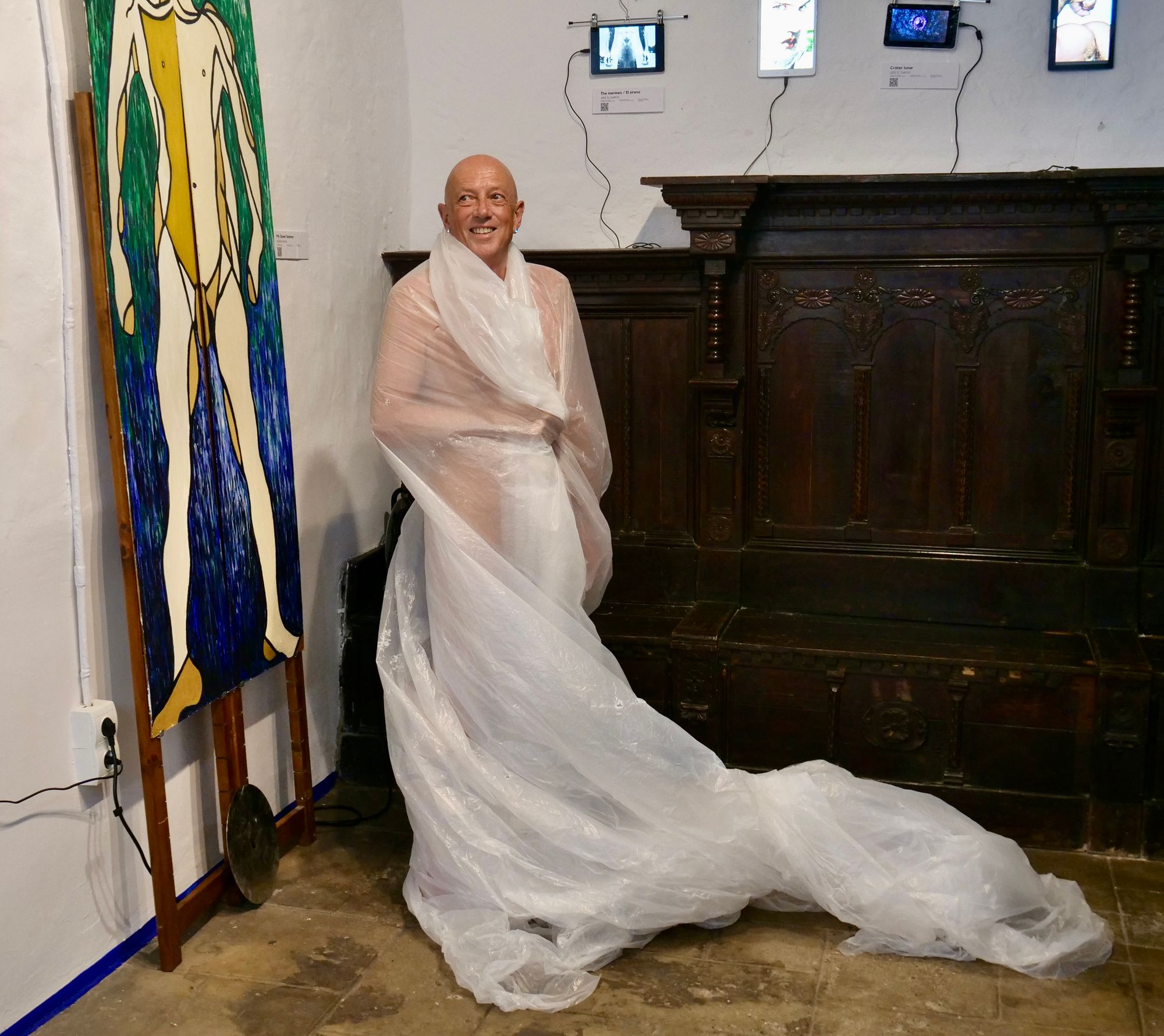 and i've been asking the question - what makes me queer ? - what part of me is queer? my head - my nipples - my arse? - no sé - don't know - i set off around the gallery looking for an answer - do the artworks hold a clue - can the audience help?