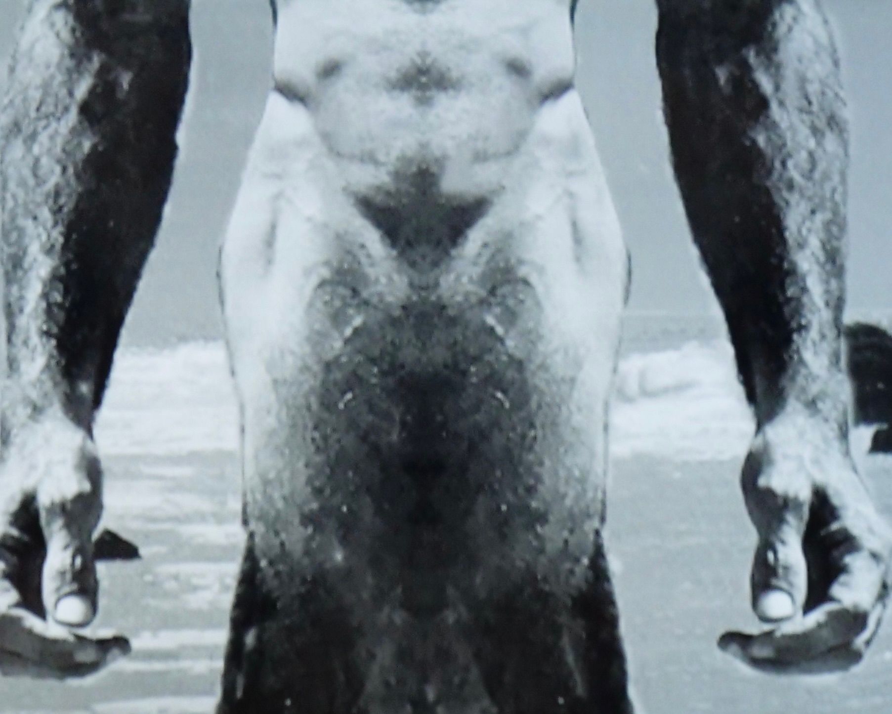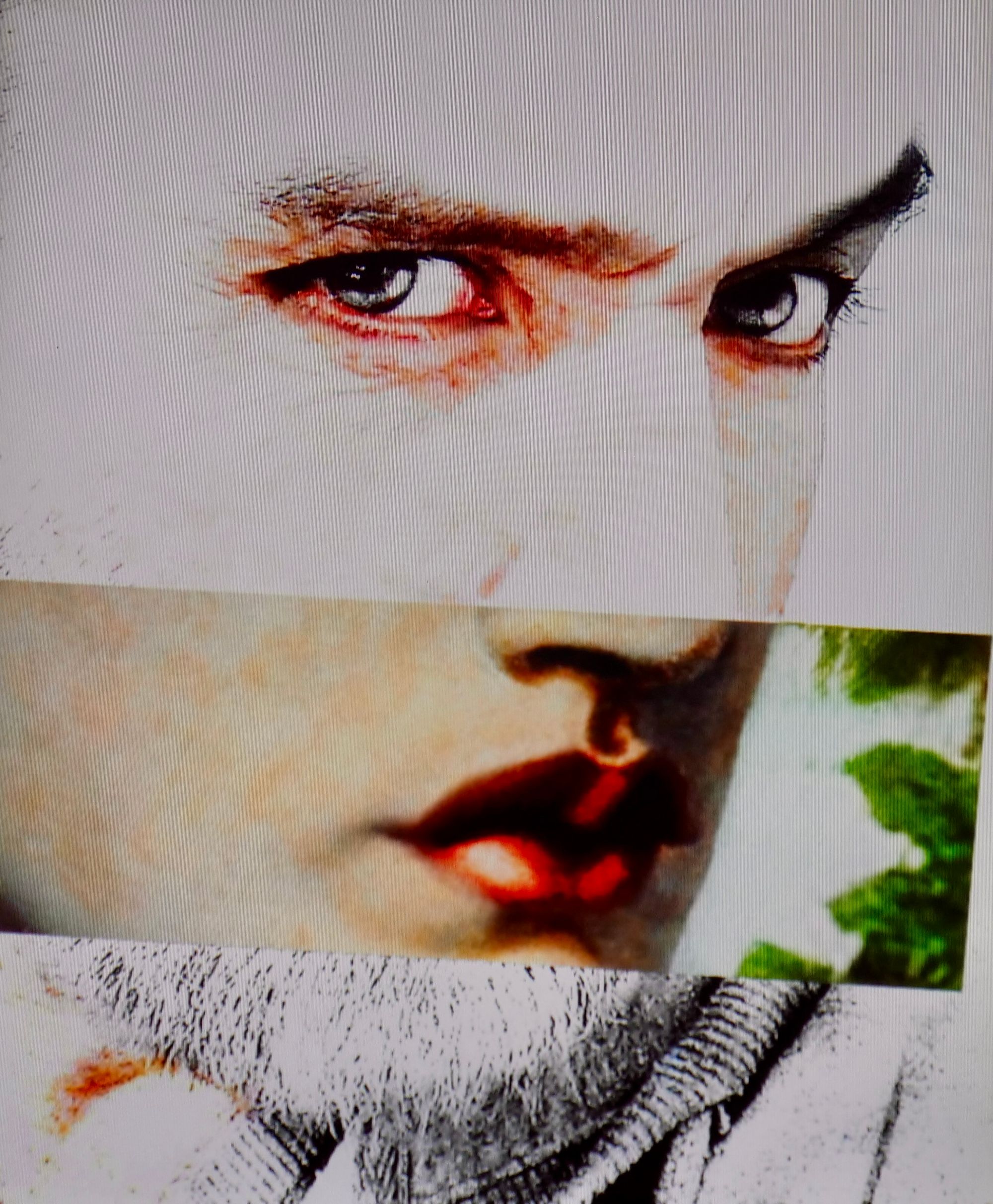 at the other end of the room demanding and confusing images stare out from the walls